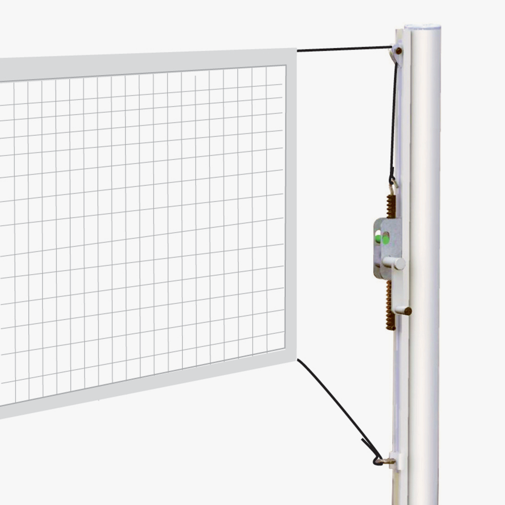 Positionner le filet sur les poteaux en passant le câble dans la roulette en partie haute puis mise en tension de l’ensemble.